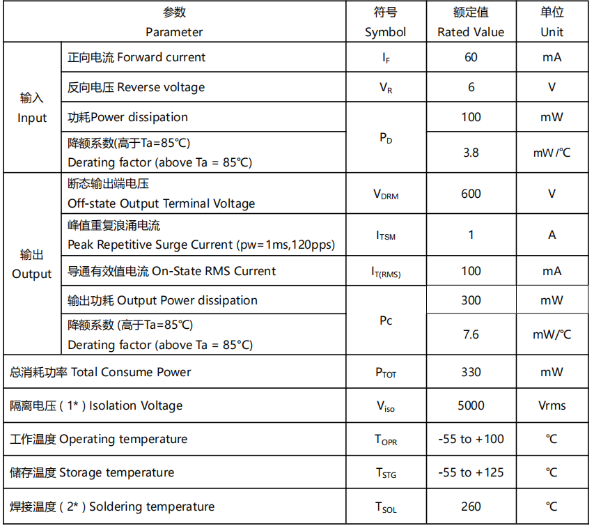 ▲GXS3063可控硅光耦的光电特性